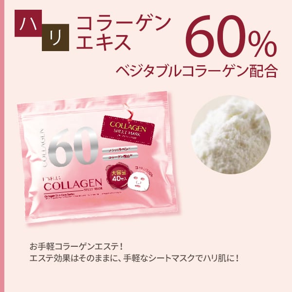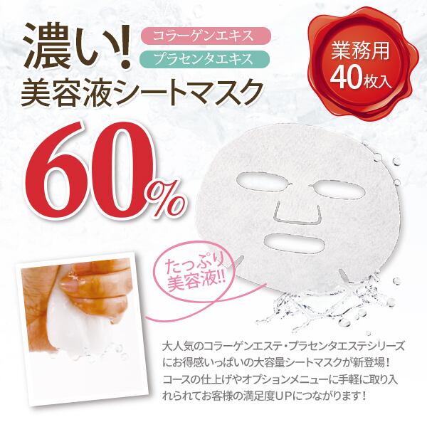 コラーゲンエキス60%!5種のベジタブルコラーゲン配合のサロン用シートマスクです。